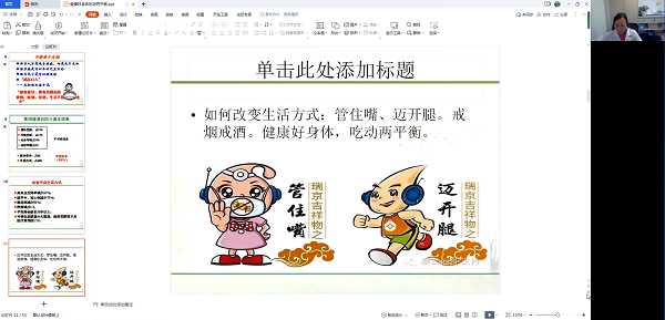 3月8日,一場線上健康知識講座拉開了序幕。公司特邀長江委長江醫(yī)院白俊芬主任以《健康好身體,吃動兩平衡》為題,從飲食、運動等方面向大家傳授健康知識,叮囑大家要調(diào)整飲食結(jié)構(gòu),合理安排體育鍛煉,這樣才能擁有一個健康的身體,更好工作,幸福生活。