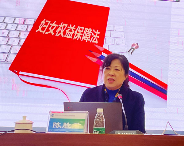 陳勝君教授以《中華人民共和國婦女權益保障法》為主線,結合《湖南省女職工勞動保護特別規定》《湖南省工會勞動法律監督條例》等法律法規,在全面解讀的基礎上,重點從女職工的婚姻家庭、財產分割、家庭暴力、勞動維權、法律援助等相關法律問題,通過典型案例和生動語言作了細致講解,著重從家庭層面、社會層面鼓勵女職工,善于用法律武器維護自身正當的權益。陳教授的講解深入淺出,邏輯嚴謹,內涵豐富,對大家深刻理解和準確把握婦女權益保障法等法律法規有極大的幫助,大家紛紛表示受益匪淺。